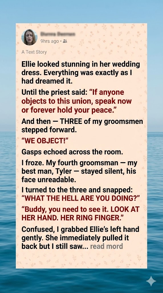 Mark hesitated, then continued. “We went to the hotel bar after the rehearsal dinner. She was there. With a guy. They were arguing. She still had a ring on that finger.”
